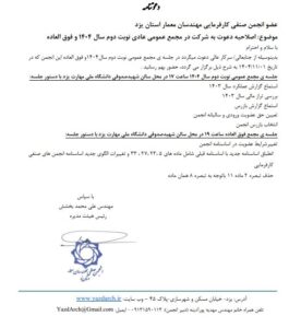 اصلاحیه ی دستورکار جلسه ی مجمع فوق العاده نوبت دوم سال 1404 انجمن صنفی مهندسان معمار استان یزد
